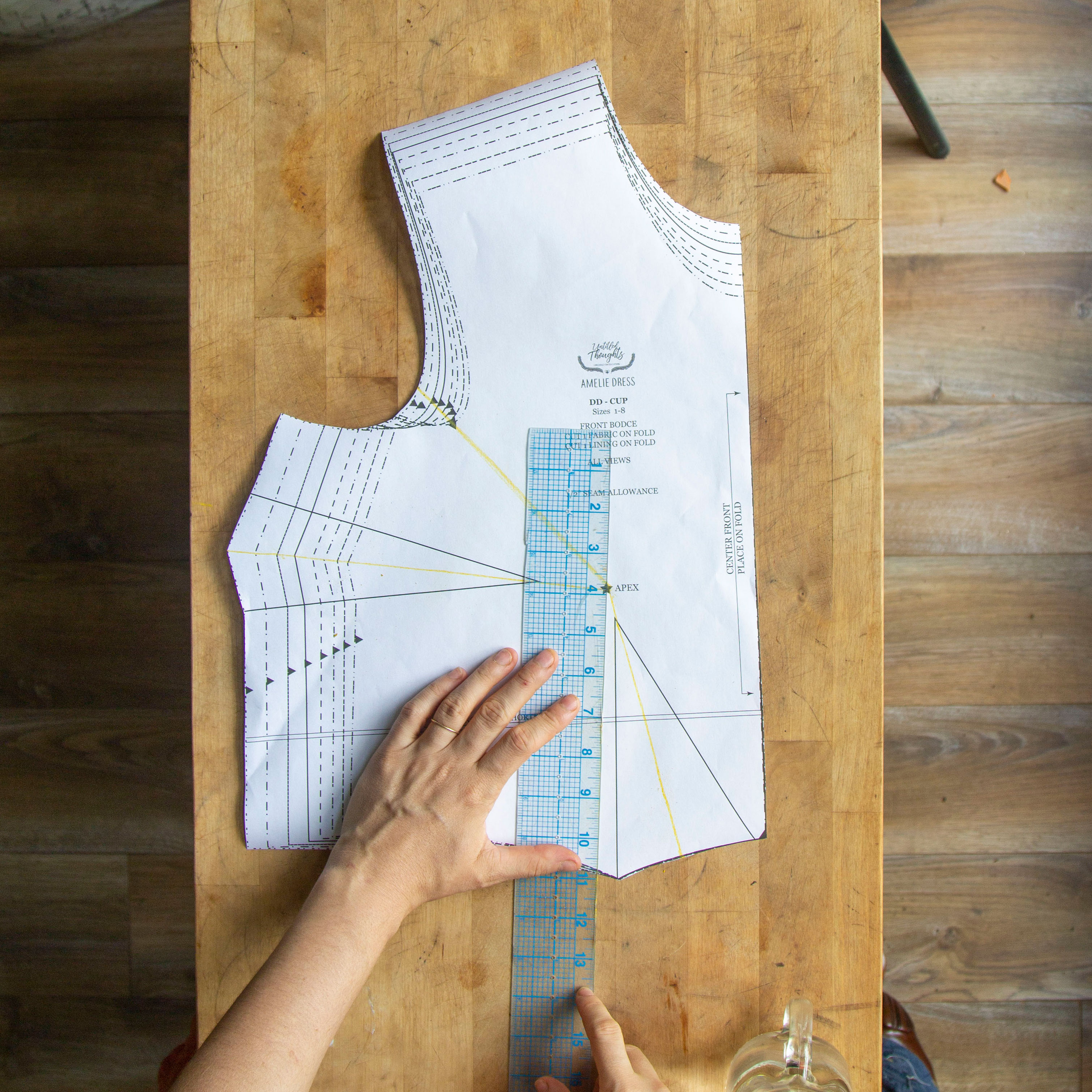 Have no fear! Adjusting your Center Front Darted pattern to fit your unique and beautiful shape is relatively simple and utilizes many of the same techniques as working on a normal FBA.This post will be fully dedicated to the act of making your alterations on a Center Front Dart specific pattern, in this case, the Amelie Dress.